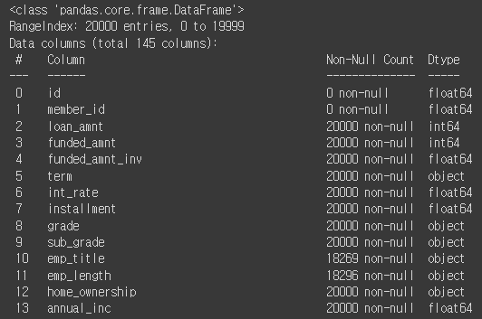 - dtype 정보에서는 각 컬럼별 데이터 타입을 확인할 수 있다